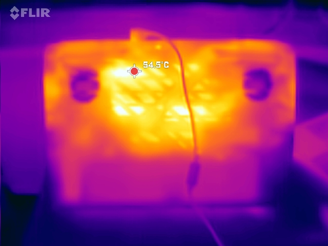 Gorące punkty w grach osiągają około 40 °C, podczas gdy spód może nagrzewać się do 50 °C przy maksymalnym obciążeniu. Pokład klawiatury pozostaje ogólnie chłodniejszy, zwłaszcza podpórki pod nadgarstki i obszar WASD.
