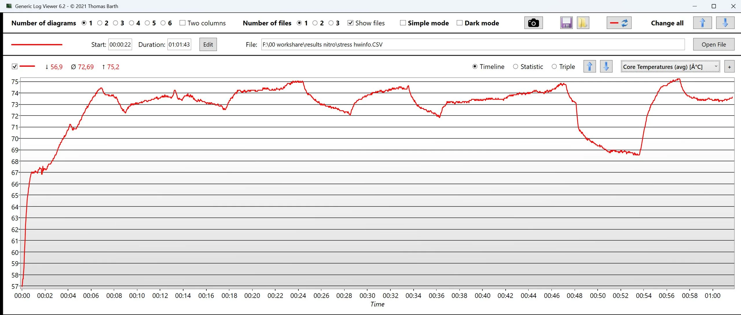 | TaktowanieCPU (GHz) | Taktowanie GPU (MHz) | Średnia temperatura CPU (°C) | Średnia temperatura GPU (°C) | |