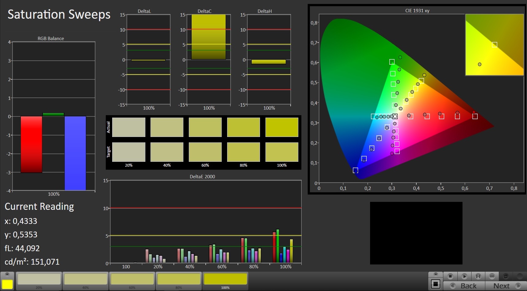 Odwzorowanie kolorów zachowuje na pochwałę. Pomiary wykazały średni błąd dE2000 w wysokości 2,53 dla odcieni szarości i 3,83 w przypadku kolorów. Temperatura barwowa (6934K) była również w porządku. Nieźle wypada paleta barw. Pokrycie przestrzeni kolorów sRGB wyniosło 86% a Adobe RGB - 56%.