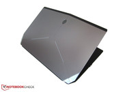 Srebrne wieko nie jest - jak można by przypuszczać - aluminiowe, ale wykonano je z materiału zawierającego włókno węglowe. W porównaniu ze starszymi modelami Alienware ten element laptopa wydaje się trochę gorszy jakościowo.