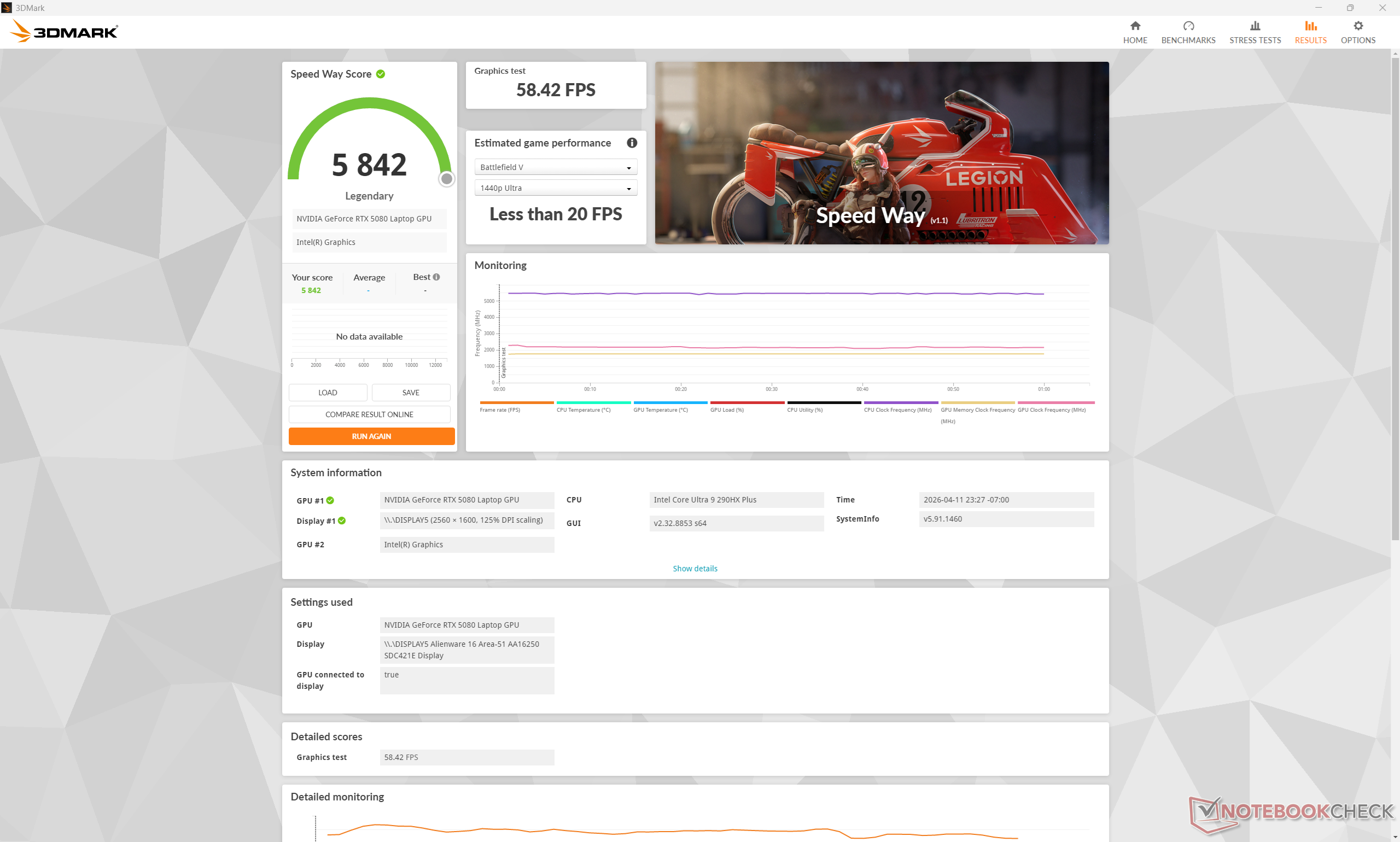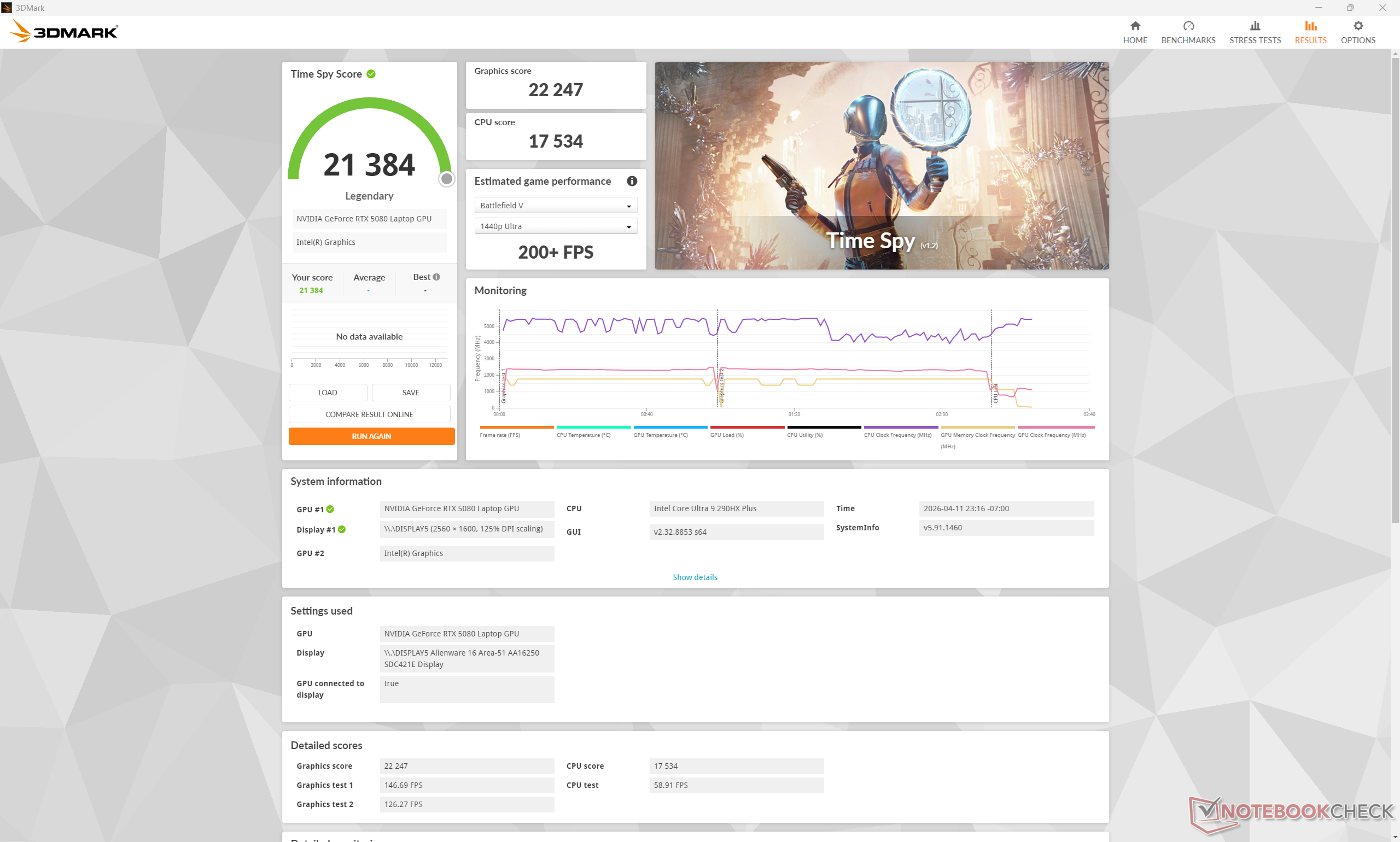 Przed uruchomieniem poniższych testów porównawczych ustawiliśmy system Windows na tryb wydajności, a Alienware Command Center na tryb Overdrive. Tryb Overdrive jest niezbędny do uzyskania maksymalnej wydajności grafiki.