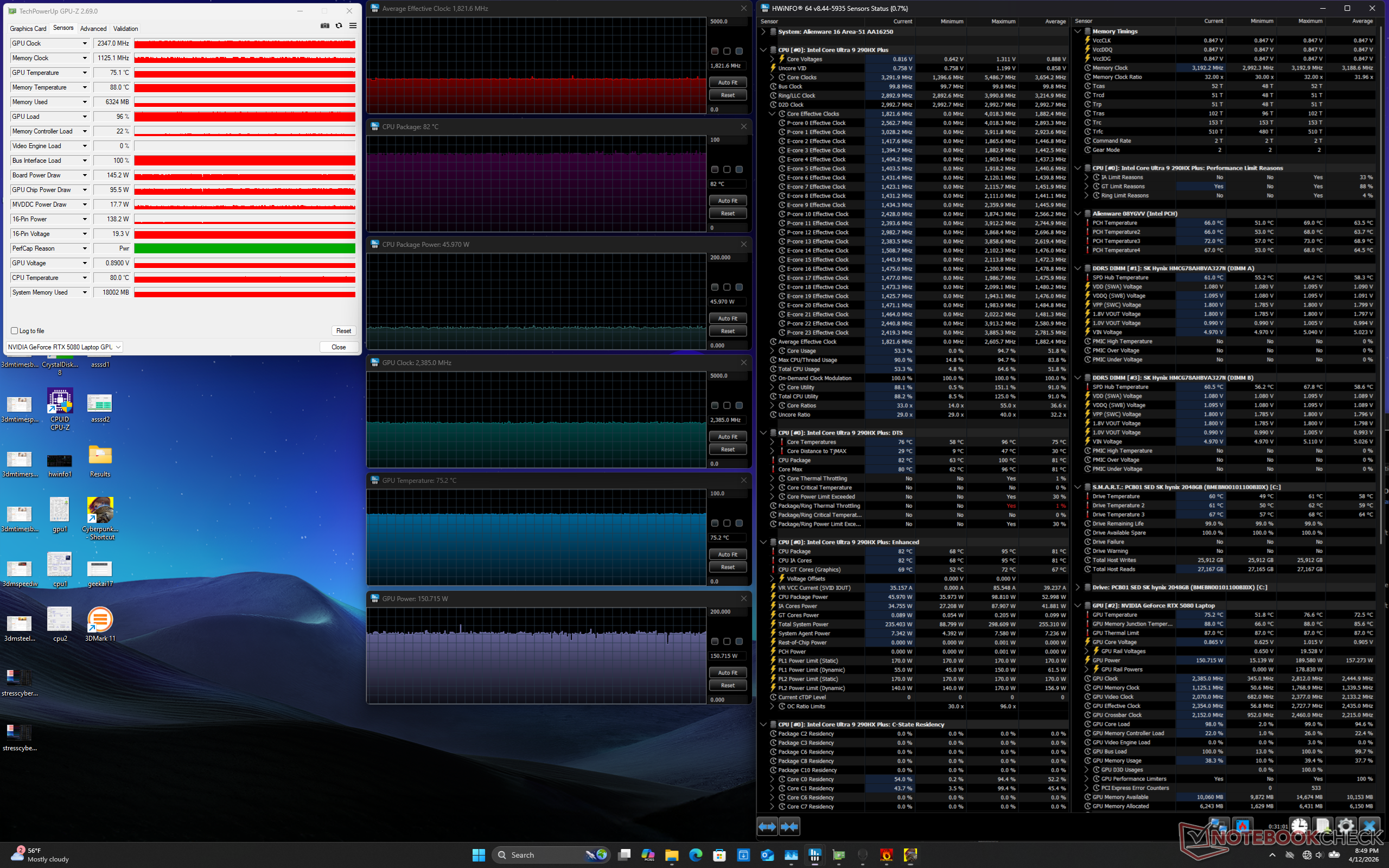 Temperatura GPU pozostałaby mniej więcej taka sama jak w modelu 2025 podczas uruchamiania Cyberpunk 2077. Temperatura procesora byłaby jednak wyższa o kilka stopni C do 82 C.