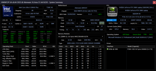 W związku z brakiem nowych procesorów graficznych GeForce w tym roku, Arrow Lake Core Ultra 9 290HX Plus i wyświetlacz OLED 1600p to jak dotąd jedyne dwa nowe dodatki do Alienware 16 Area-51 z 2026 roku. Nowy procesor jest rzeczywiście do 25 procent szybszy niż poprzednia topowa opcja Core Ultra 9 275HX, ale zużycie energii jest podobnie do 25 procent bardziej wymagające].