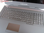 Klawiatura znacznie różni się od tej z Alienware M18x R2. Nie jest to już przyrząd podobny do klasycznej klawiatury do komputerów stacjonarnych, a wersja o spłaszczonych, niższych klawiszach, która z wyglądu przypomina klawiatury laptopów Clevo P170SM i P177SM.