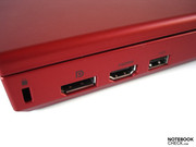 Reszta gniazd pozostała mniej więcej identyczna. Po lewej stronie znaleźć można kolejno od tyłu obudowy blokadę Kensigntona, złącze DisplayPort oraz wyjście HDMI. Dwa ostatnie służą oczywiście do wyprowadzenia sygnału wideo do urządzeń zewnętrznych. Po tej samej stronie, ale bliżej frontu, znajduje się zaś gniazdo sieciowe Gigabit LAN (poprzednio Fast Ethernet LAN) oraz czytnik kart pamięci i w końcu port FireWire. Trzy gniazda audio (2x out, 1x in) umieszczono z kolei po prawej.
