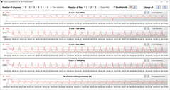 Nasz test obciążeniowy, polegający na ciągłym uruchamianiu programów Prime95 i FurMark, reprezentuje ekstremalny scenariusz mający na celu ocenę stabilności systemu pod pełnym obciążeniem. Podczas testu (trwającego co najmniej godzinę) CPU pracował z umiarkowanymi prędkościami zegara (rdzenie P: ok. 2,5 GHz; rdzenie E: ok. 2,3 GHz), podczas gdy GPU wahało się między 1000 a 1500 MHz.