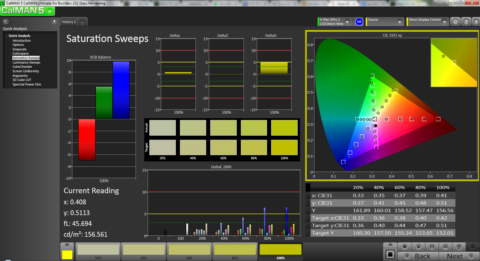 Przeprowadzona kalibracja spłaszczyła balans RGB i spowodowała zmniejszenie błędów dla szarości i kolorów do odpowiednio 2,2 i 2,53. Po kalibracji pewne zastrzeżenia można by mieć tylko do odwzorowania koloru niebieskiego.