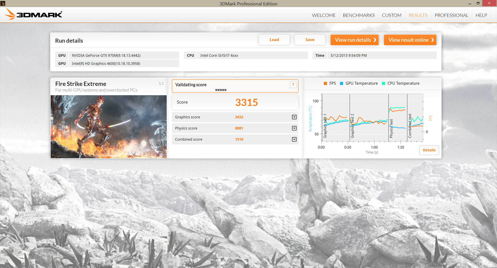 | 3DMark Fire Strike Extreme Score | 3315 pkt. | |