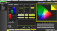 Średnia luminancja przy maksymalnej intensywności podświetlenia ekranu przekroczyła 300 cd/m². Nawet najwyższej zmierzonej wartości, 319,3 cd/m², daleko jednak do deklarowanych przez producenta 400 cd/m². Kontrast w wysokości 620:1 jest całkiem przyzwoity. Pokrycie przestrzeni kolorów okazało się nie najgorsze (83% w przypadku sRGB, 62% dla Adobe RGB). Podobnie wyniki stwierdzono w modelach Razer Blade 14 i Gigabyte P34W. Kolory wydawały się głębokie. Biel o temperaturze 6925K jest akceptowalna. W stanie fabrycznym średni błąd dE2000 dla skali szarości wynosił tylko 4,4. W przypadku kolorów ten błąd był jeszcze mniejszy (4,17). Wierność kolorów była podobna przy różnych poziomach nasycenia.