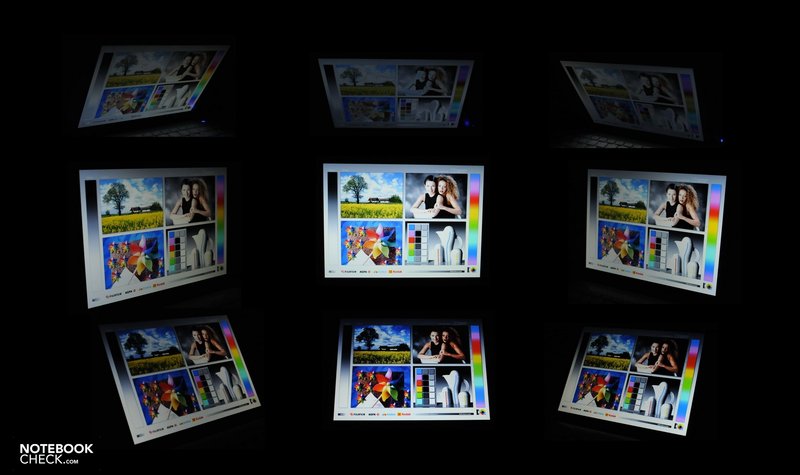 Kąty widzenia w poziomie są dość szerokie. Przy patrzeniu pod wyjątkowo ostrym kątem widać tylko niewielkie pogorszenie jakości obrazu. Dużo gorzej jest w zakresie pionowym - najmniejsze odchylenie od pozycji optymalnej powoduje kompletne popsucie się obrazu. Znamy to jednak z wielu laptopów.