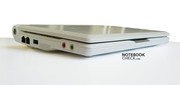 Zasobności w złącza nie ma co krytykować, biorąc pod uwagę, z jakim maluchem mamy do czynienia. Eee PC ustępuje pod tym względem testowanemu przez nas niedawno Aristo Pico (VIA NanoBook), ale nie odstaje jakoś dramatycznie. Bardzo ważne są porty USB, a to ze względu na konieczność rozszerzania za ich pośrednictwem zasobów pamięci masowej, której Asusowi brakuje. Jest ich aż trzy, jeden z lewej i dwa z prawej strony. Na prawej burcie ulokowano też czytnik kart pamięci.