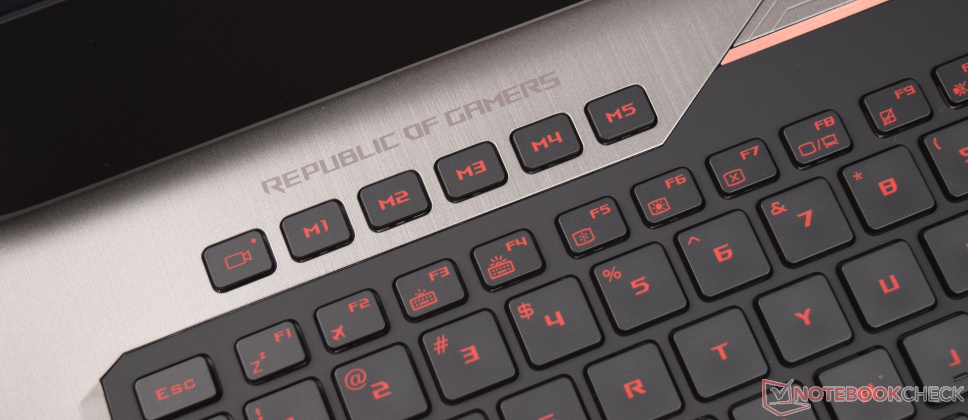 Klawiatura nie zmieniła się w porównaniu ze starszym G752. Poszczególne klawisze są dość duże a odstępy między nimi wynoszą 3 mm. Skok klawiszy ma 2,5 mm. Powierzchnia płytek jest matowa i robią one korzystne wrażenie swoją jakością. Czerwone podświetlenie klawiatury ma trzy poziomy intensywności.