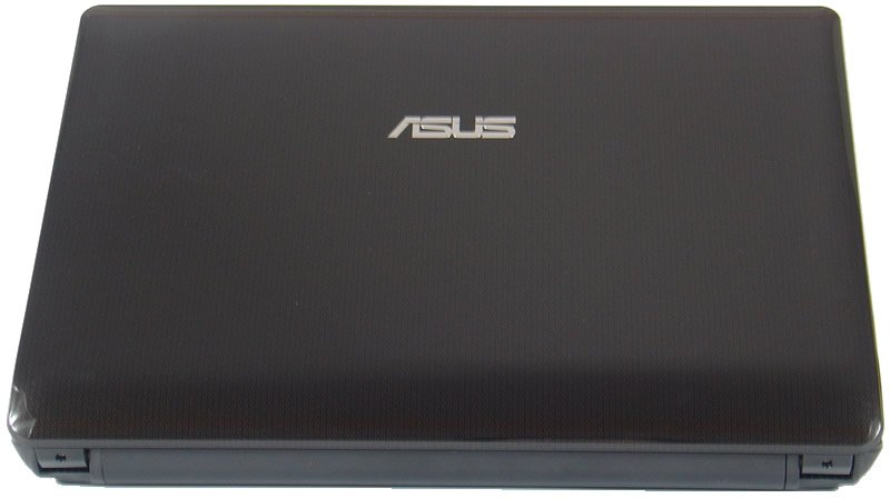 Klapa jest wykonana z tworzyw sztucznych. Z zewnętrznej strony pokrywa ją nudny brązowo-kawowy wzorek o romboidalnych kształtach będący motywem przewodnim większości laptopów z serii K. Ramka ekranu została pomalowana na czarno. Obie powierzchnie obudowy panelu LCD pokryto błyszczącym lakierem, który z swojej natury jest podatny na zarysowania oraz doskonale zapamiętuje odciski placów.
