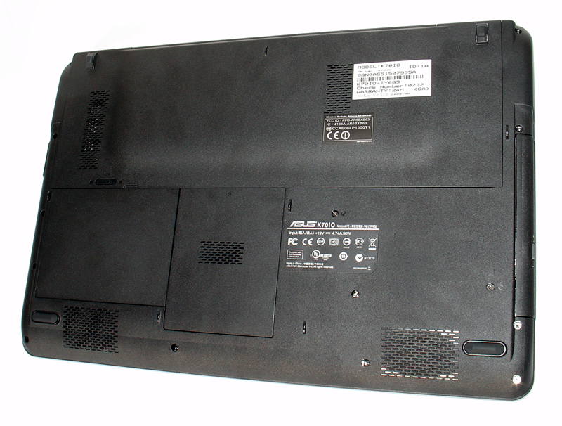 Asus K70IO został zaprojektowany zgodnie z najnowszymi trendami. Przyglądając się notebookowi z profilu, można odnieść wrażenie, że projektanci wzorowali się na linii Gemstone Blue Acera. Laptop ma smukły kształt zwężający się ku przodowi. W odróżnieniu jednak od produktów konkurencji Asus posiada bardziej sztywną konstrukcję.