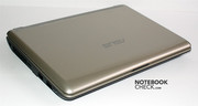 Pomimo że to jeden z najcięższych netbooków (waży 1,57 kg), sprzęt ten wydaje się przyjemnie lekki. Chociaż jego gabaryty są spore jak na minilaptop (wystarczy się przekonać, jak gruba jest ramka ekranu, by stwierdzić, że obrys obudowy mógłby być mniejszy), uzasadnionym jest określenie go poręcznym, nawet ze wspomnianą odstającą trochę baterią.