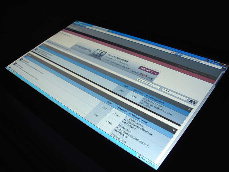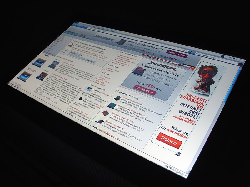 Sytuacji nie poprawia stosunkowo niska (jak na matrycę z podświetleniem LED) jasność, która nie przekracza 200 cd/m². Ponad przeciętność nie wybijają się także paleta barw (nieobejmująca nawet większej części obszaru sRGB) oraz nieszczególne kąty widzenia.