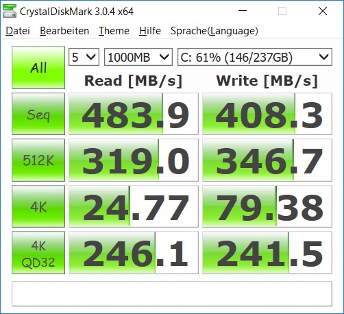 | Write 4k QD32 (MB/s) | 241.5 | 525 117% | 140.2 -42% | 138.1 -43% | 1.057 -100% |