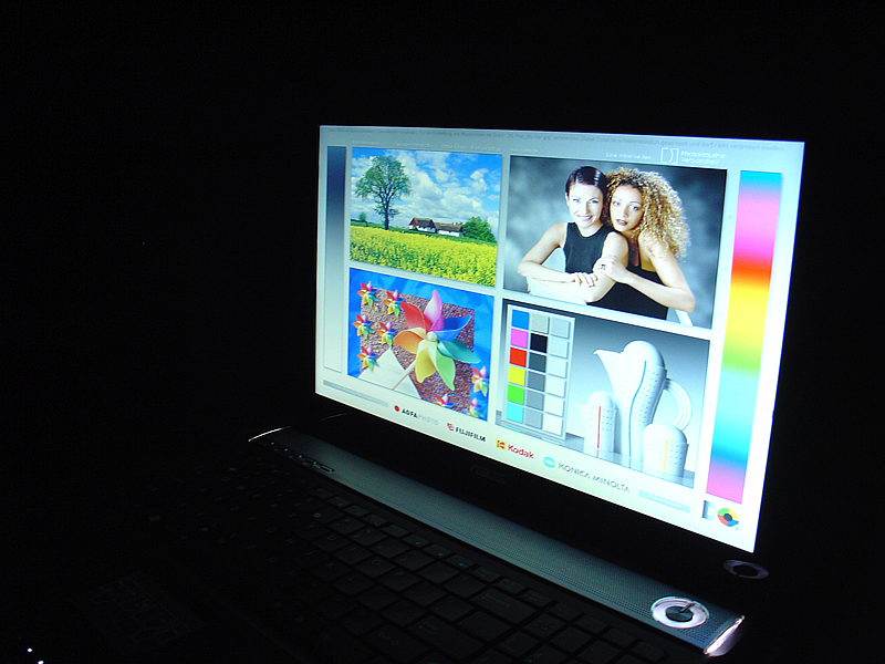 Testowany Asus N61VG może poszczycić się najnowszą matrycą firmy Samsung. Ten 16-calowy ekran podświetlany diodami LED cechuje się równomiernym podświetleniem, wysoką klarownością obrazu, niezłym wysyceniem barw a także dobrymi kątami w poziomie. Gorzej prezentują się kąty widzenia w pionie. Nawet delikatne przestawienie matrycy w tej osi powoduje spłowienie i oziębienie barw. Co ciekawe, obraz dalej zachowuje klarowność. Nie ma efektu mgły czy ziarnistości, jaką można spotkać w konkurencyjnych ekranach LG czy AUO.
