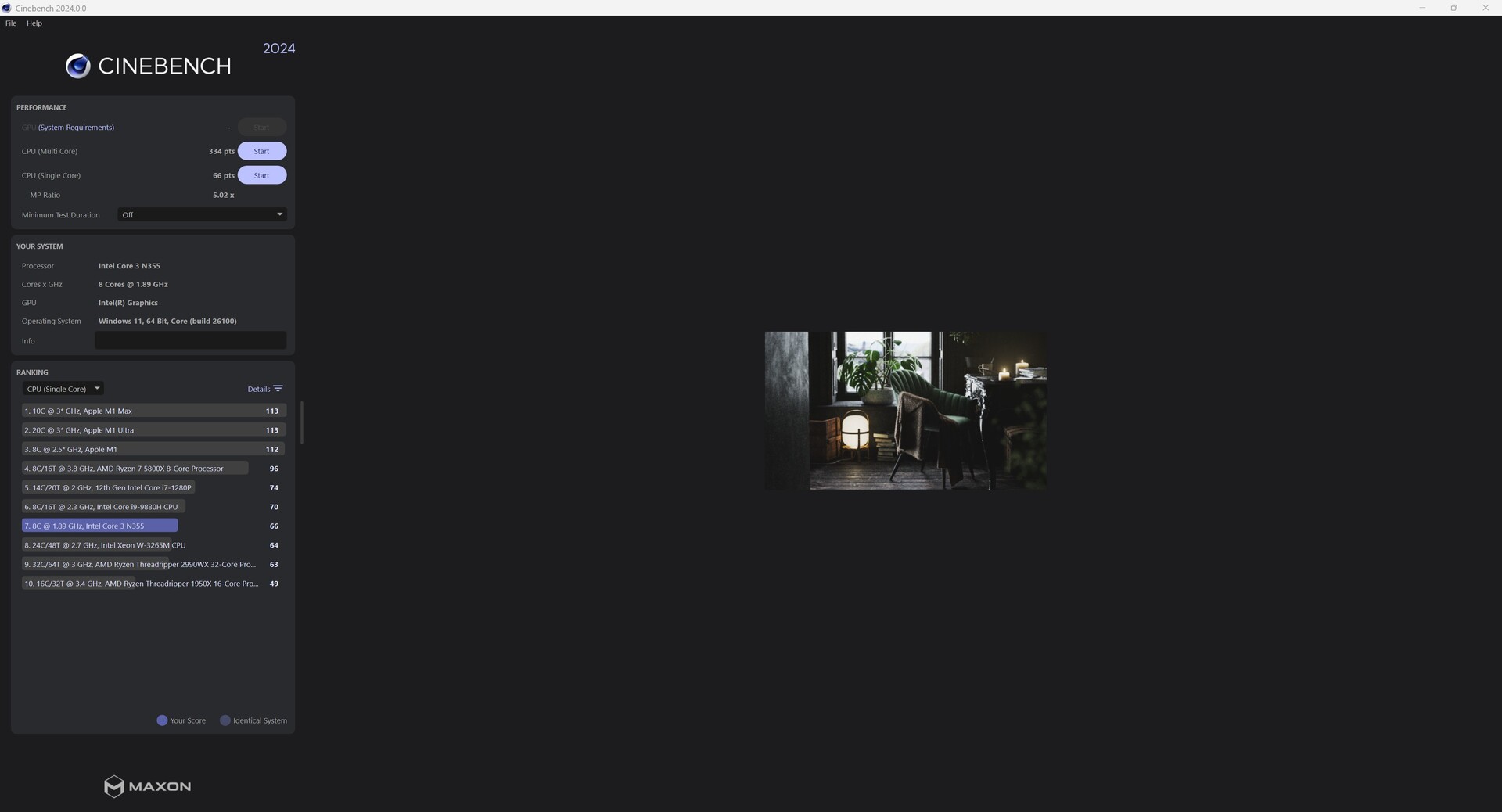 Intel Core 3 N335 to najnowszy SoC firmy Intel z ośmioma rdzeniami. Ogólnie rzecz biorąc, SoC bazuje na znanym już Intel Core i3-N305, który również jest wyposażony w osiem rdzeni. Nowszy model N355 zapewnia jednak 100 MHz więcej w trybie Turbo, co oznacza, że w optymalnych warunkach można oczekiwać 3,9 GHz. Największy wpływ na wydajność ma jednak dostępny pobór mocy. Wewnątrz Asus NUC 14 Essential są one ustawione na 20 watów (PL1) i 35 watów (PL2). Naszym zdaniem wybrane limity mocy są dobrze dobrane.
