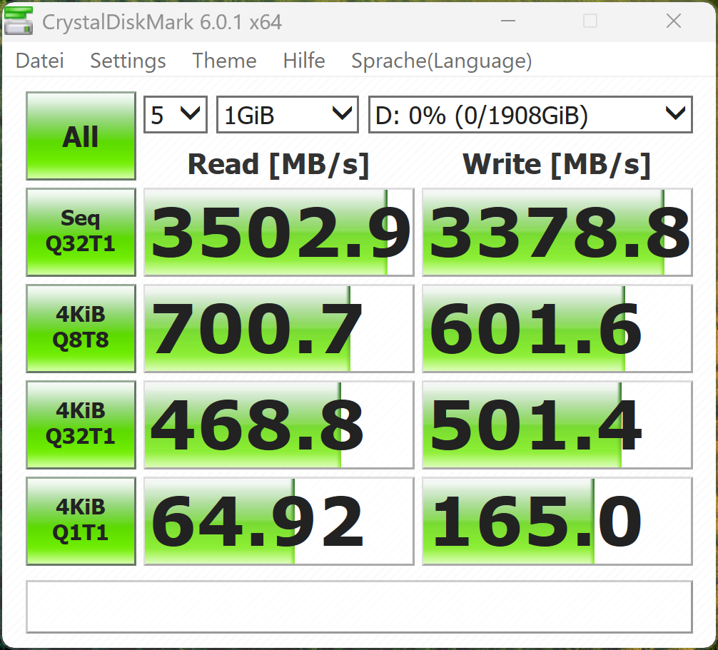 Poniższe testy porównawcze i pomiary przeprowadziliśmy przy użyciu profilu zasilania Wydajność. Do codziennego użytku zalecamy jednak korzystanie z trybu Whisper, ponieważ wentylatory pozostają znacznie cichsze. Nawet w trybie ręcznym GPU może pobierać tylko 120 watów.