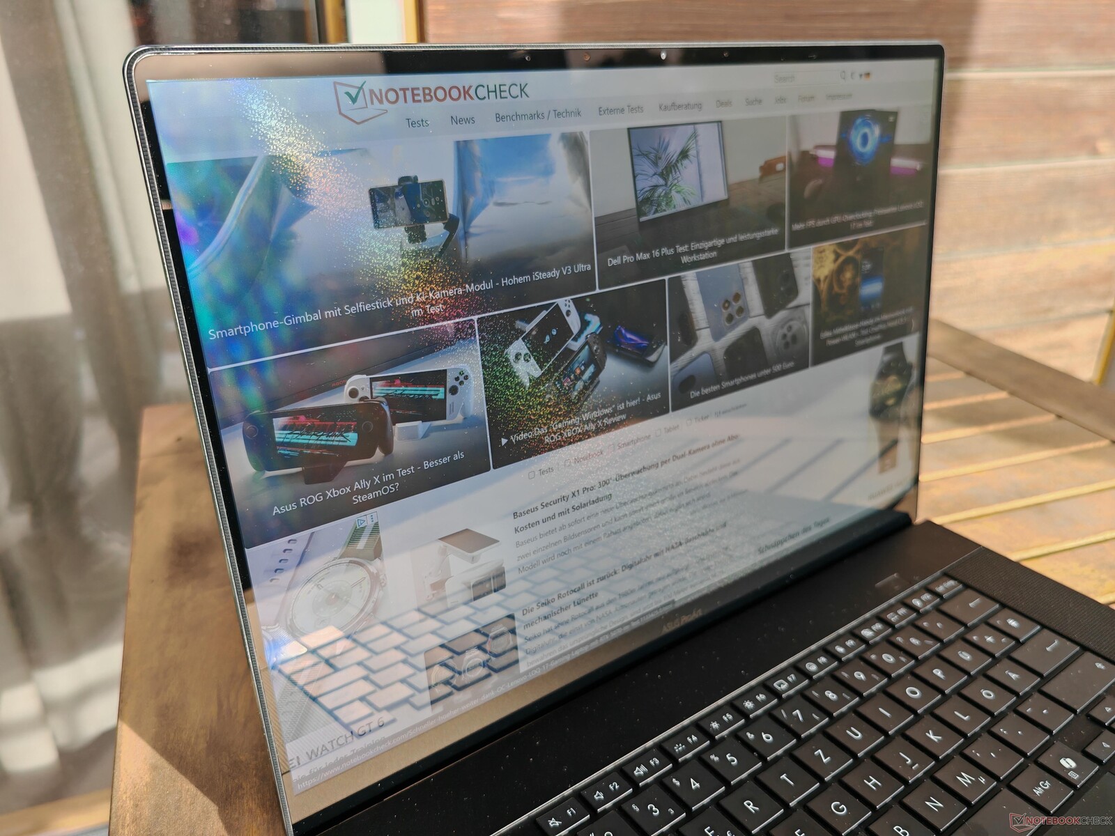 Zarówno ROG Zephyrus G16, jak i poprzedni ProArt P16, z ekranem OLED 2,8K, nie były szczególnie przekonujące, jeśli chodzi o jasność. Dwa powyższe obrazy porównawcze natychmiast podkreślają różnicę wynikającą ze zwiększonej jasności nowego panelu Lumina Pro. Zamiast około 360 cd/m², wynosi ona teraz do 660 cd/m² w trybie SDR. MacBook Pro (z włączonym czujnikiem jasności) i Yoga Pro 9i 16 radzą sobie nawet z około 1000 cd/m².