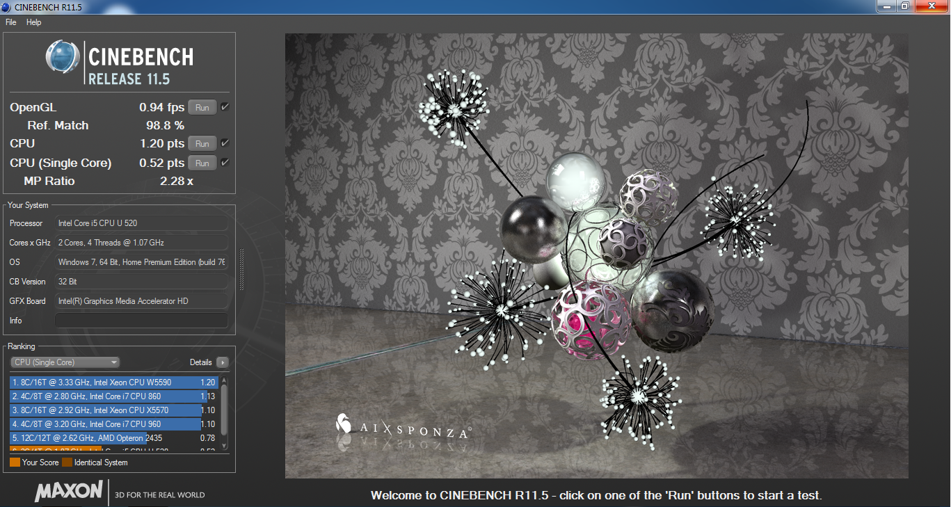 Jak te suche opisy przekładają się na wydajność? Wspomniane już SpeedStep i Turbo Boost pozwalają procesorowi 520UM pracować w zakresie od 665 MHz (mnożnik x5) do 1866 MHz (x14). Dodając do tego Hyper-Threading, uzyskano 2-rdzeniowy procesor, który potrafi liczyć cztery wątki jednocześnie i jest szybszy niż Core 2 Duo SU7300 z Asusa UL30VT, nawet jeśli w tym ostatnim aktywna jest funkcja Turbo33.
