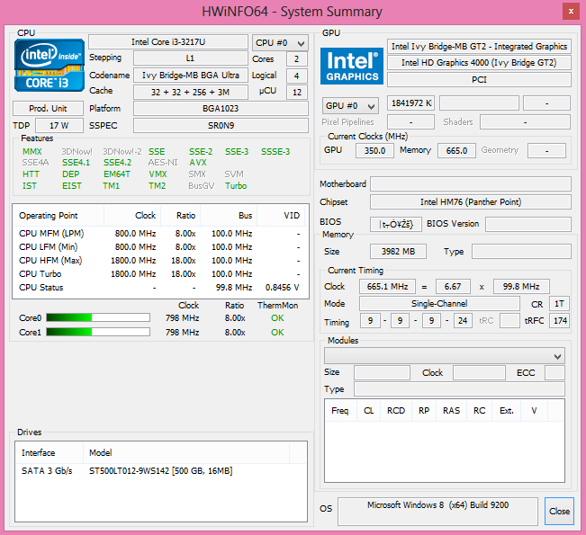 Wspomniany układ grafiki wykorzystuje współdzieloną pamięć RAM. W testowanym egzemplarzu był wykorzystywany tryb jednokanałowy pamięci i zastosowano moduł DDR3-1333. Z tego powodu wydajność również jest nieco mniejsza, niż mogłaby być.