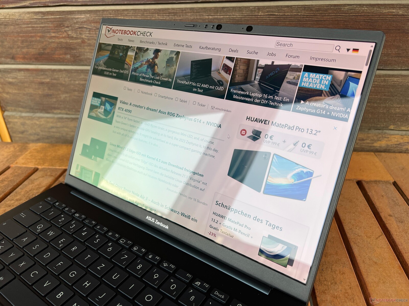 Asus oferuje swojego nowego Zenbooka 14 wyłącznie z panelami OLED - nasze urządzenie testowe posiada opcjonalny wariant 3K (2880 x 1800 pikseli, 16:10) z częstotliwością odświeżania 120 Hz, ale wejścia dotykowe nie są obsługiwane. Subiektywnie, jakość obrazu jest niesamowita i oprócz absolutnej czerni, wyświetlacz przedstawia również bardzo żywe kolory. Co więcej, jego czas reakcji jest niezwykle szybki, a ruchy wydają się bardzo płynne dzięki częstotliwości odświeżania 120 Hz. Jasność i temperatura kolorów mogą być regulowane automatycznie.