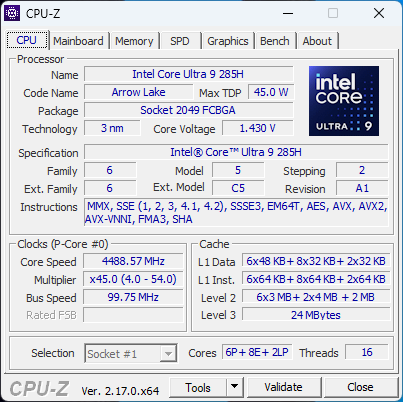 | Przeciętny Intel Core Ultra 9 285H (2280 - 3496, n=9) | |