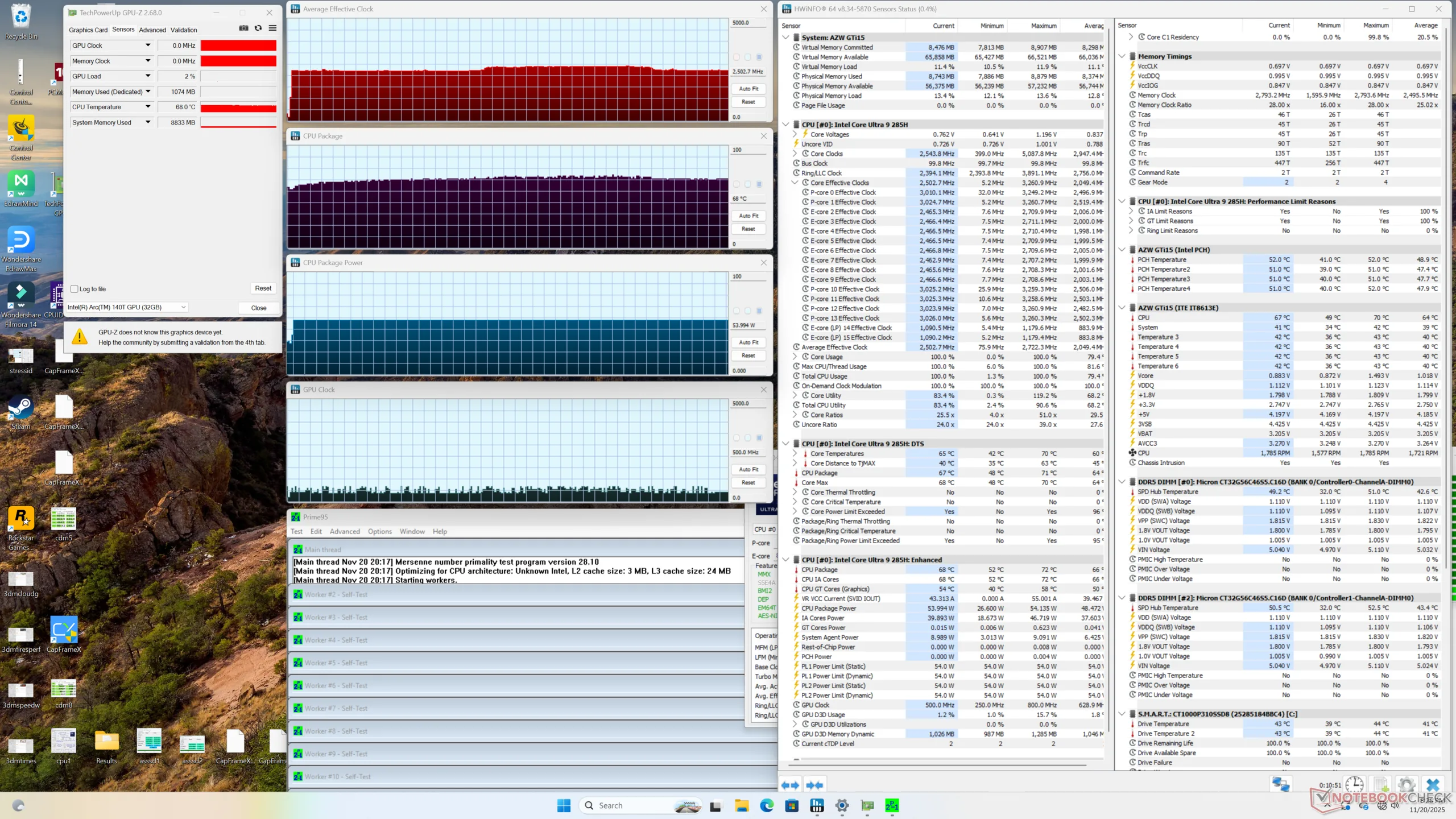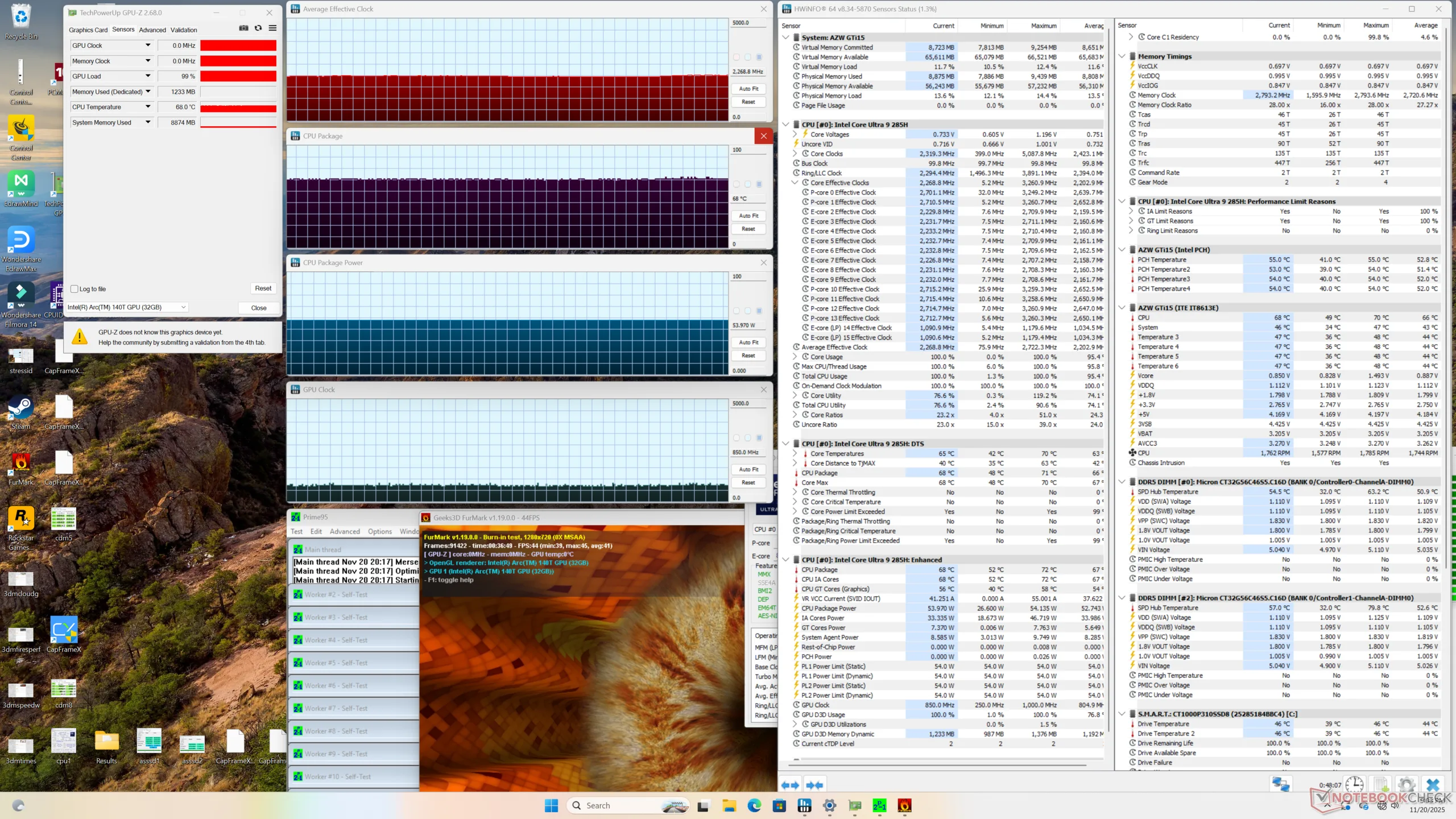 | Prime95 + FurMark Stress | 2.3 | 850 | 68 |