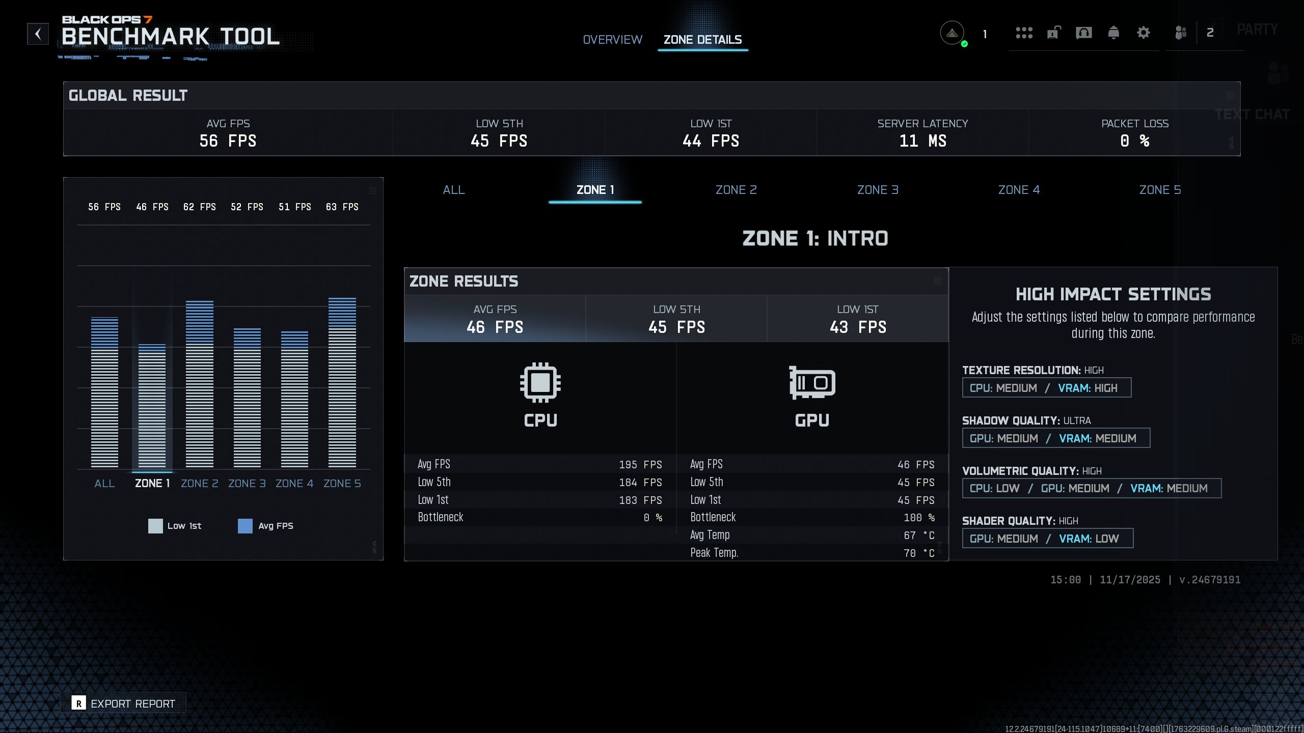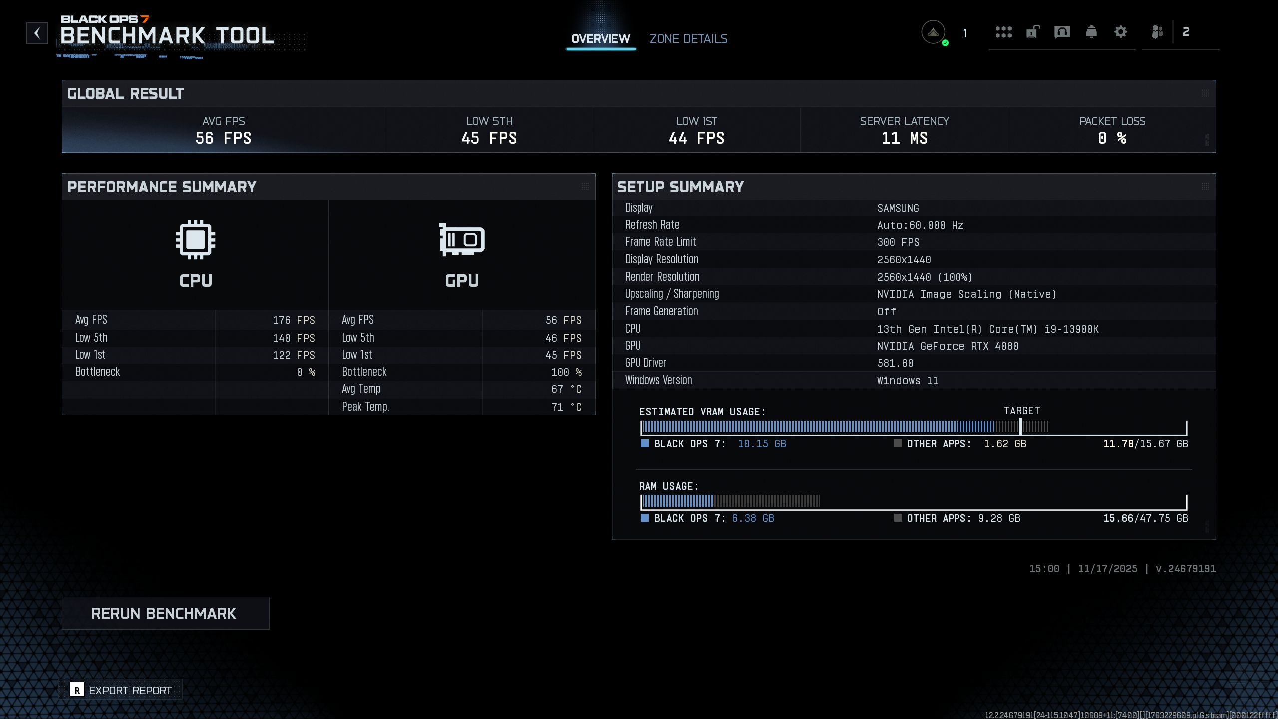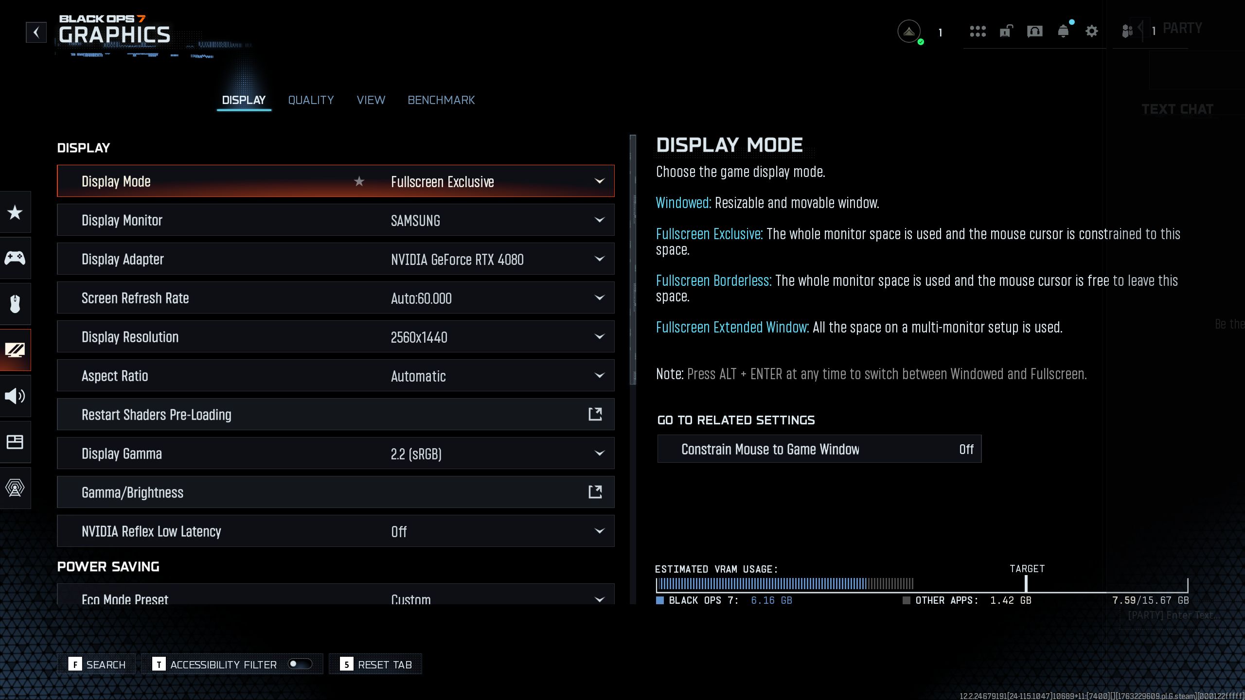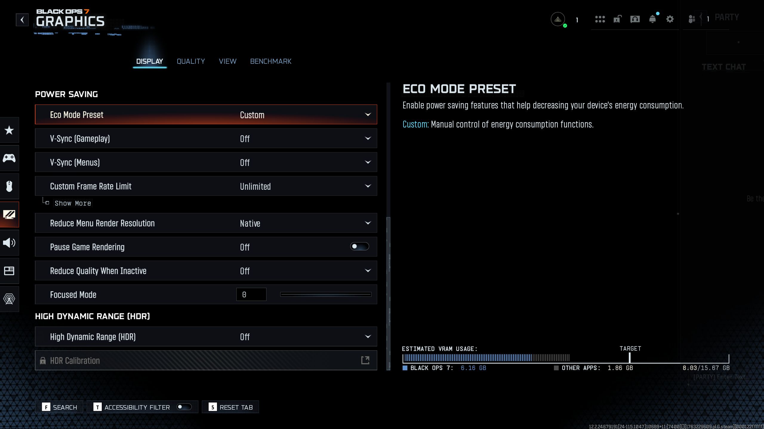 Podobnie jak większość obecnych gier, Call of Duty: Black Ops 7 jest dość wymagające pod względem pamięci VRAM, ale nie osiąga poziomu niektórych gier Unreal Engine 5 (zob Borderlands 4). Przykładowo, maksymalne ustawienia w rozdzielczości QHD wymagają około 8 GB pamięci VRAM. Najlepsze jest to, że zmiany ustawień są stosowane bezpośrednio, bez konieczności ponownego uruchamiania.