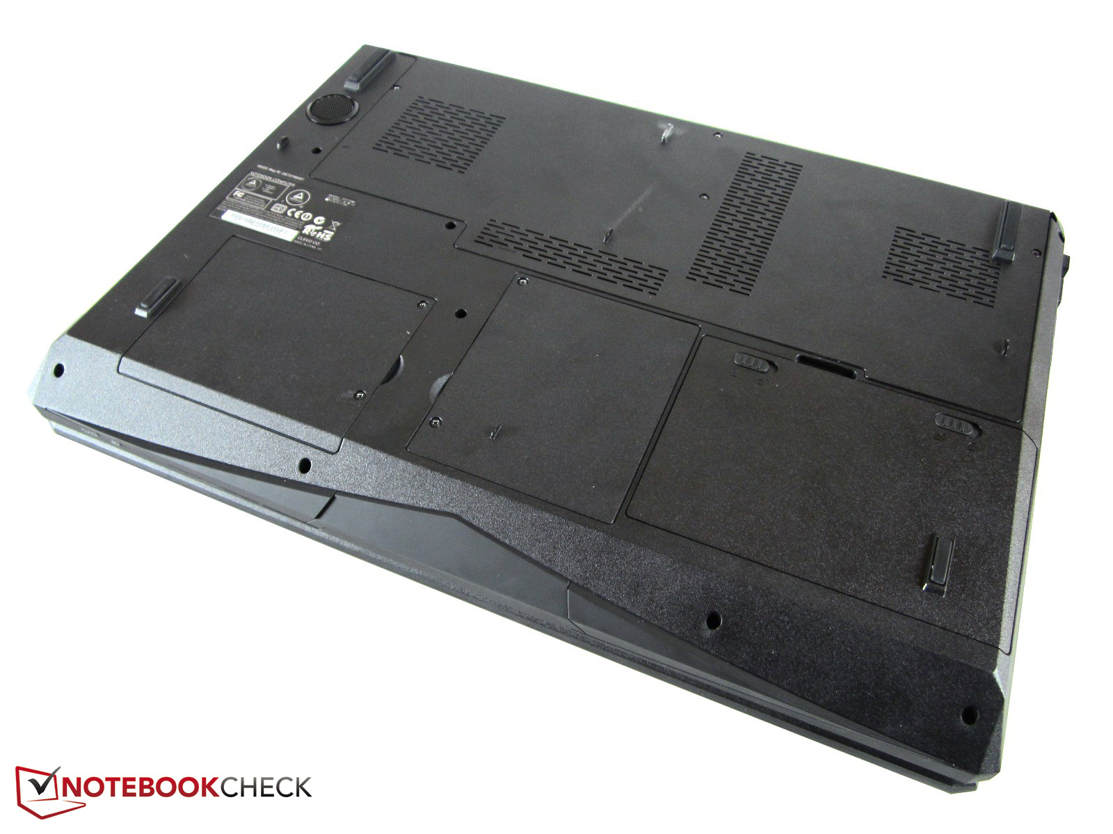 Oprócz wieka reszta obudowy wykazuje raczej dużą odporność na wyginanie i wytrzymałość. Gdy użyje się większej siły, tylko klawiatura i otoczenie czytnika biometrycznego ustępują pod naciskiem. Biorąc pod uwagę wymiary (414 x 286 x 54 mm) i dużą masę (prawie cztery kilogramy), notebook wydaje się olbrzymi. W zasadzie nie nadaje się do częstego podróżowania. Jeszcze masywniejszy P170SM jest równie zwalisty.