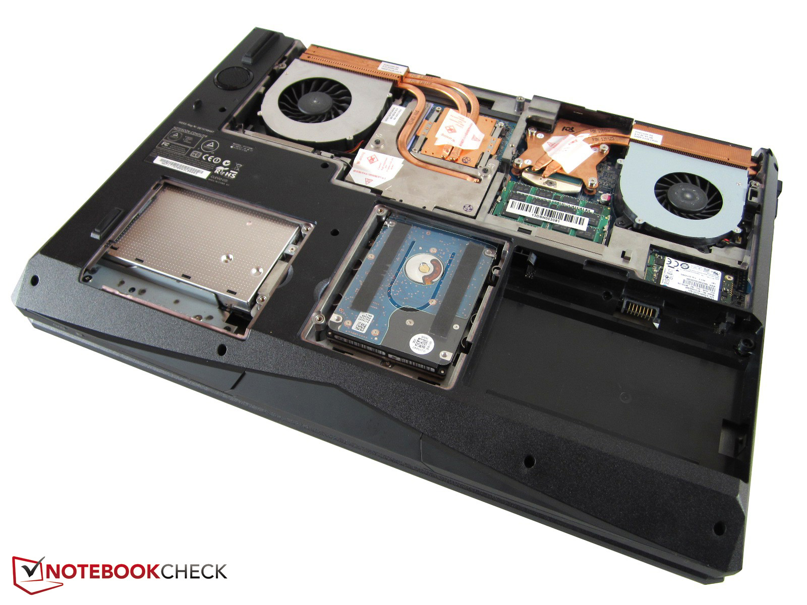 Chyba żaden inny laptop dla graczy nie może równać się z Clevo P177SM pod względem dostępu do wnętrza. Na spodzie notebooka znajdują się trzy klapy serwisowe. Pierwsza mieści podstawowy dysk twardy 2,5" i gniazdo mSATA. Pod drugą kryje się napęd optyczny i (pod nim) kolejna zatoka na dysk 2,5". Największe możliwości daje trzecia (największa) klapka. Dostępne są tu: karta graficzna, procesor, główne gniazda pamięci i kolejne gniazdo mSATA. Dzięki przyjaznemu użytkownikowi układowi łatwo czyścić i wymieniać komponenty wewnętrzne.