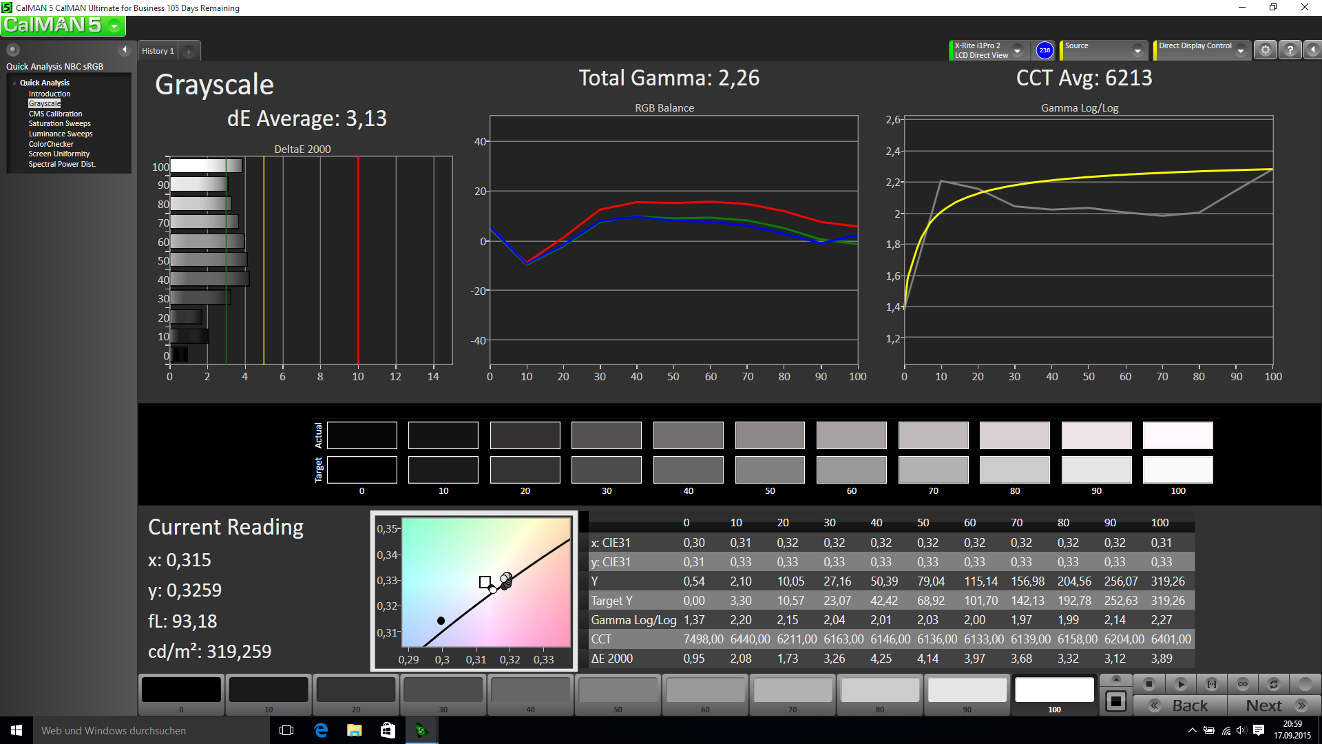 ΔE Greyscale Calman: 3.13 | ∀{0.09-98 Ø5}