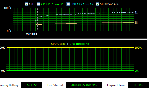 Karta graficzna osiąga temperatury zbliżone do tych GF 8600M GT latem, czyli wysokie. Poza tym okazało się, że ta w zestawie z X9000 grzeje się mocniej od tej współdziałającej z T9400. W tym pierwszym przypadku było to 63 (idle) do 94 (stres) stopni, w drugim zaś - odpowiednio 65 i 85 kresek. Czyżby zatem nie tylko układy na starszych rdzeniach Nvidii były nie ten teges?...
