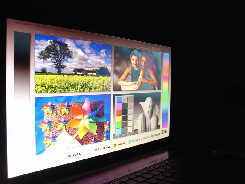 Pod względem pokrycia palety barw omawiany LCD prezentuje się dość przeciętnie. Wyświetla 727718 kolorów, co stanowi jedynie 87,2% przestrzeni sRGB. Jest to jednak nieco więcej, niż w przypadku ekranu konkurencyjnego Samsunga 550P7C, który wyświetla ich o 63639 mniej.