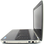 Dla praworęcznego użytkownika rozmieszczenie portów peryferyjnych będzie w pełni zadowalające. Przednią cześć prawej ścianki bocznej wykorzystano na jeden z czterech portów USB 3.0, za którym umieszczono napęd optyczny. Kolejne USB 3.0 i port LAN są ulokowane w tylnej części prawego boku i nie przeszkadzają w codziennej pracy. Przednia i tylna strona laptopa pozostały praktycznie niezagospodarowane. Na przedniej krawędzi znajduje się czytnik kart; tylną zaś zajmuje akumulator. Resztę portów peryferyjnych umieszczono na lewej flance.