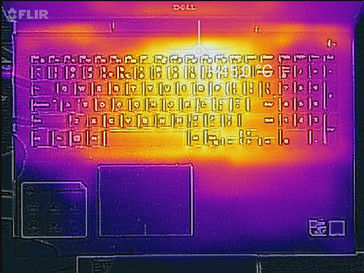 Podczas pracy bez obciążenia omawiany laptop się nie nagrzewa, W teście pełnego obciążenia wzrost temperatur nie był zaś duży. W najcieplejszym miejscu zmierzono 43,4°C. Na środku klawiatury stwierdzono 40°C, co oznacza, że czuć tam ciepło. Podczas normalnego użytkowania (korzystanie z internetu, granie) autor nie uskarżał się na zbyt wysokie temperatury obudowy.