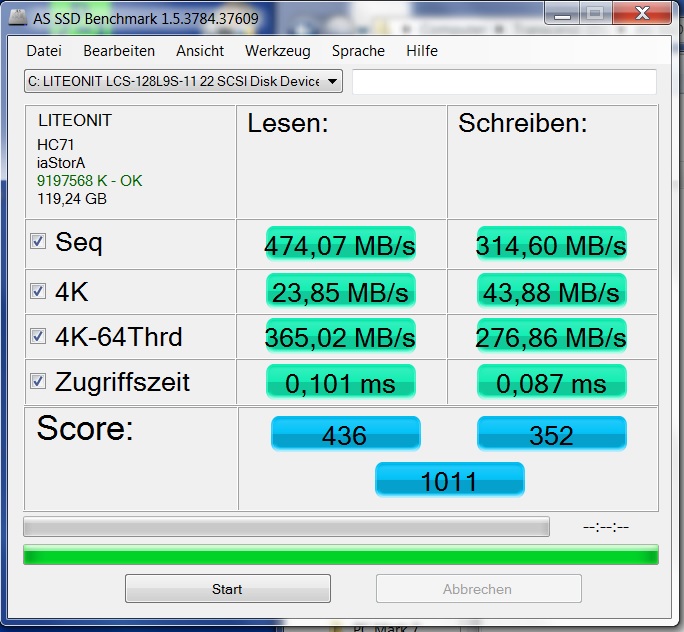 Dysk SSD Lite-On o pojemności 128 GB jest szybszy od dysków twardych z laptopów, z którymi był porównywany Dell Latitude E5550. W teście AS SSD odczyt sekwencyjny osiągnął 474 MB/s, a zapis - 315 MB/s.