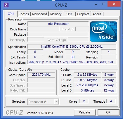 Testowany Dell E7250 posiadał dwurdzeniowy procesor Core i5-5300U, który należy do najnowszej generacji CPU Intela (Broadwell). Jego bazowe taktowanie to 2,3 GHz. Maksymalne wynosi 2,7 GHz dla dwóch rdzeni i 2,9 GHz dla jednego rdzenia. Procesor ten posiada Hyper-Threading, toteż może wykonywać obliczenia na czterech wątkach jednocześnie. Jest to jednostka niskonapięciowa, o TDP w wysokości 15 W.