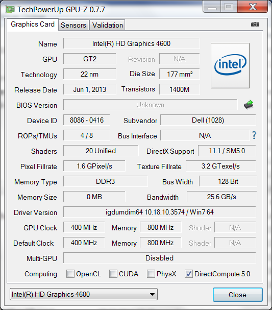 Kiedy laptop nie jest wykorzystywany do pracy z aplikacjami wymagającymi od GPU większej wydajności, można zdać się na zintegrowany z procesorem układ grafiki HD Graphics 4600. Dzięki temu, że jest on do dyspozycji użytkownika, może on skorzystać z przydatnej technologii Intel Quick Sync Video, która znacząco przyspiesza konwertowanie filmów. Układ grafiki może być wybierany automatycznie, można go skojarzyć z planem zasilania, a także powiązać daną aplikację z wybranym GPU.