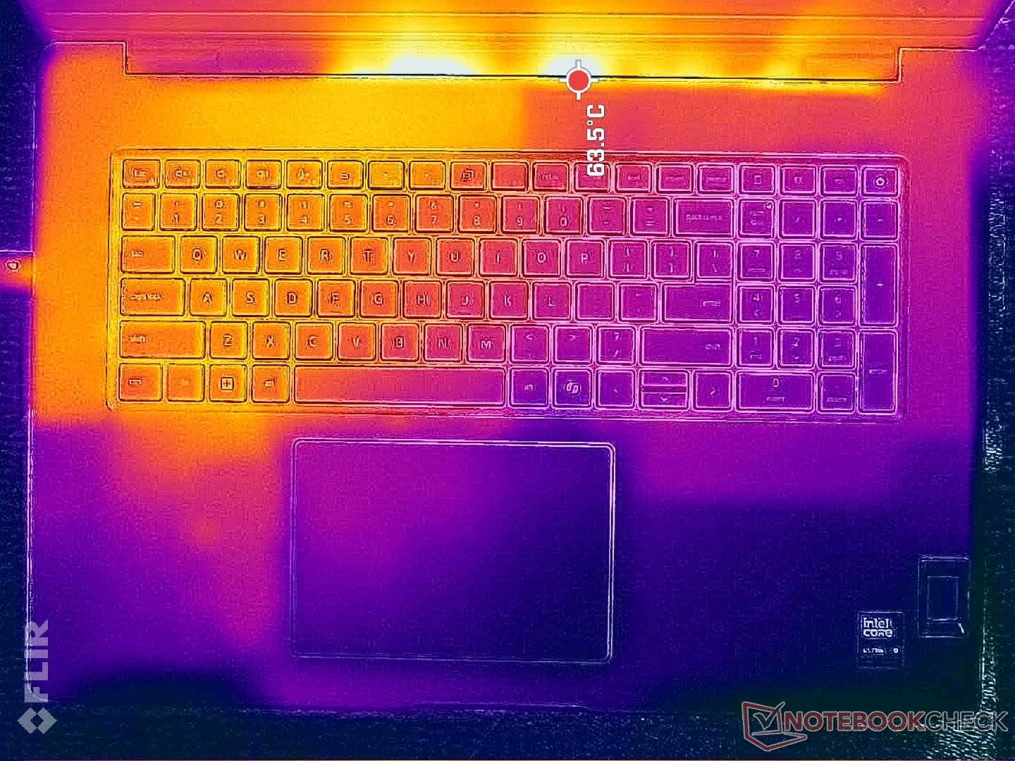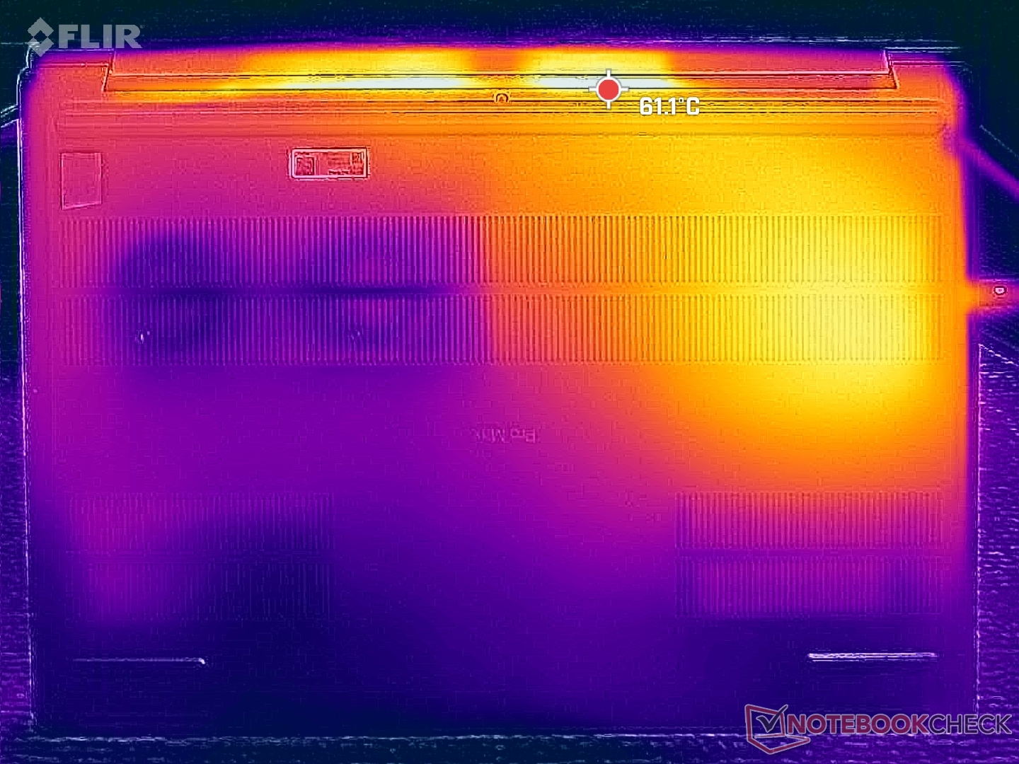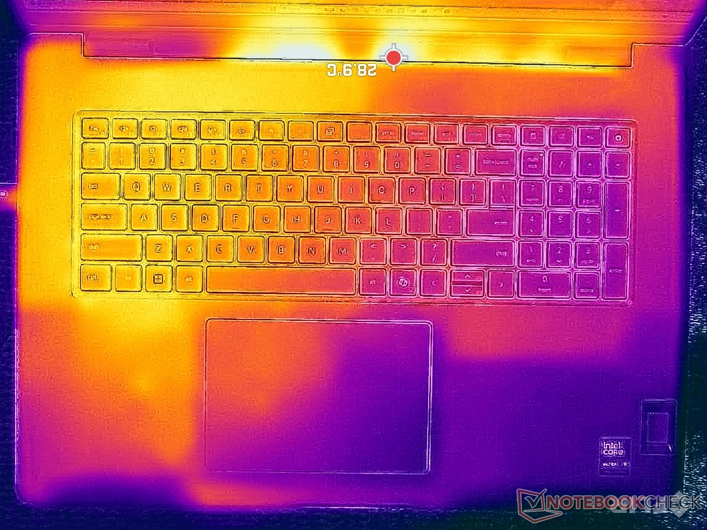 (+) Podparcia dłoni i touchpad osiągają maksymalną temperaturę skóry (32.8 °C / 91 F) i dlatego nie są gorące.