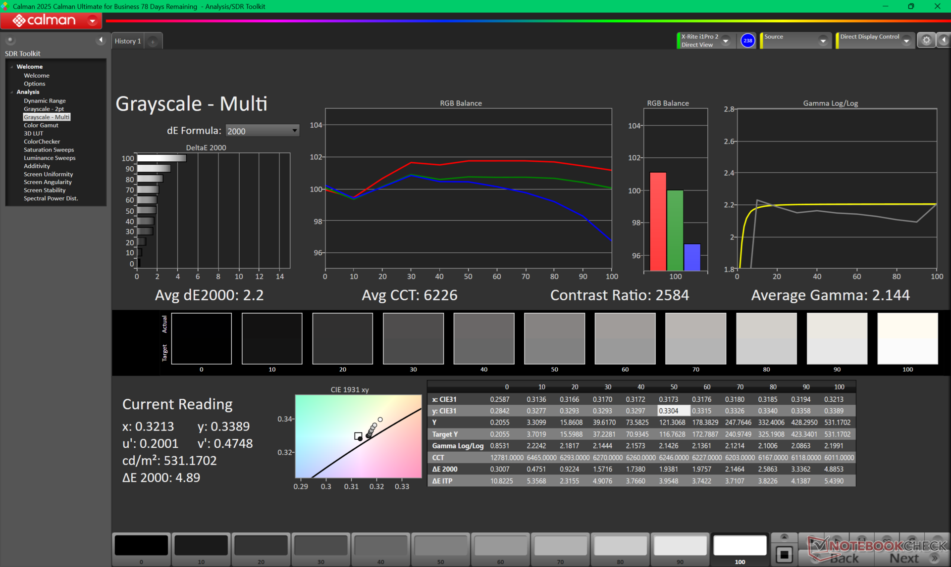 ΔE Greyscale Calman: 2.2 | ∀{0.09-98 Ø5}