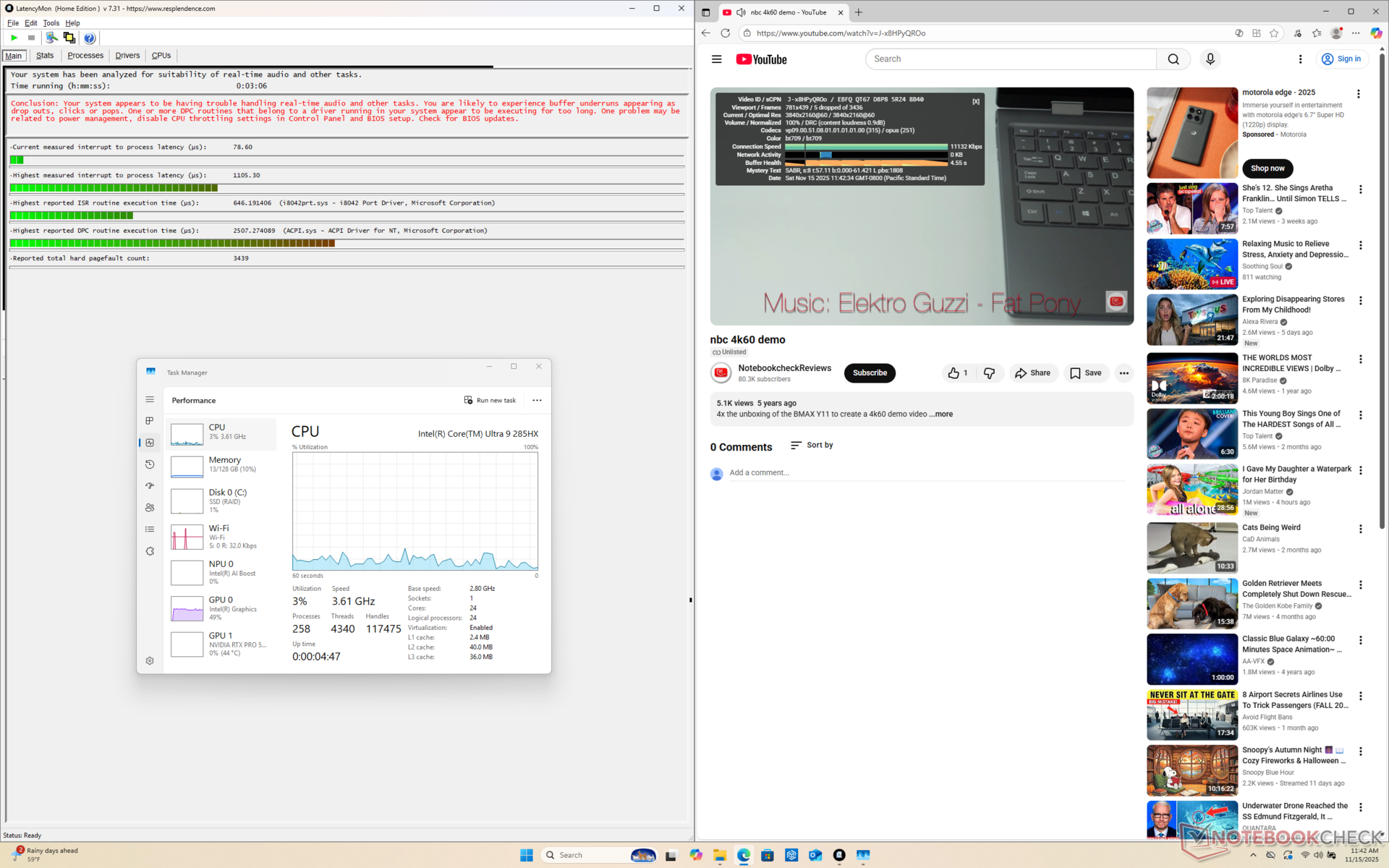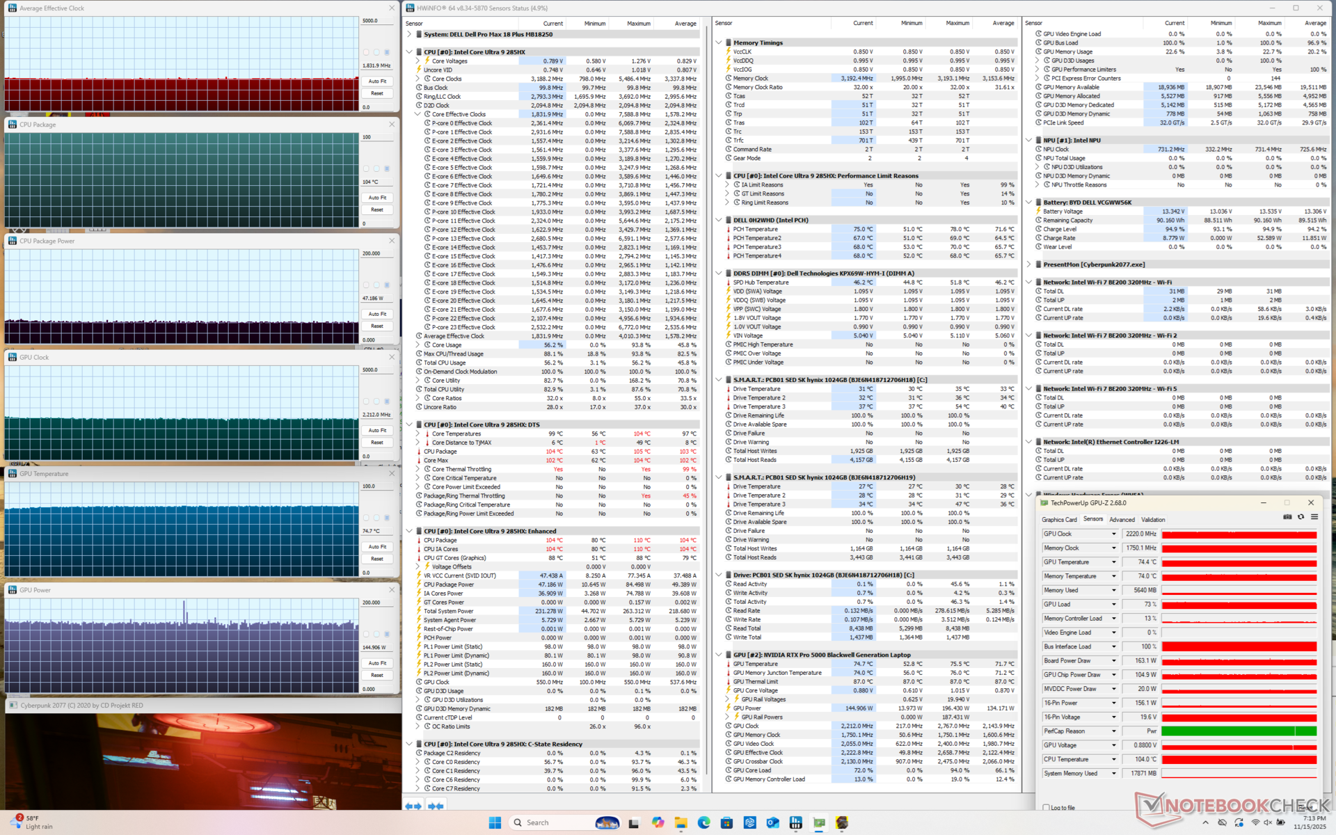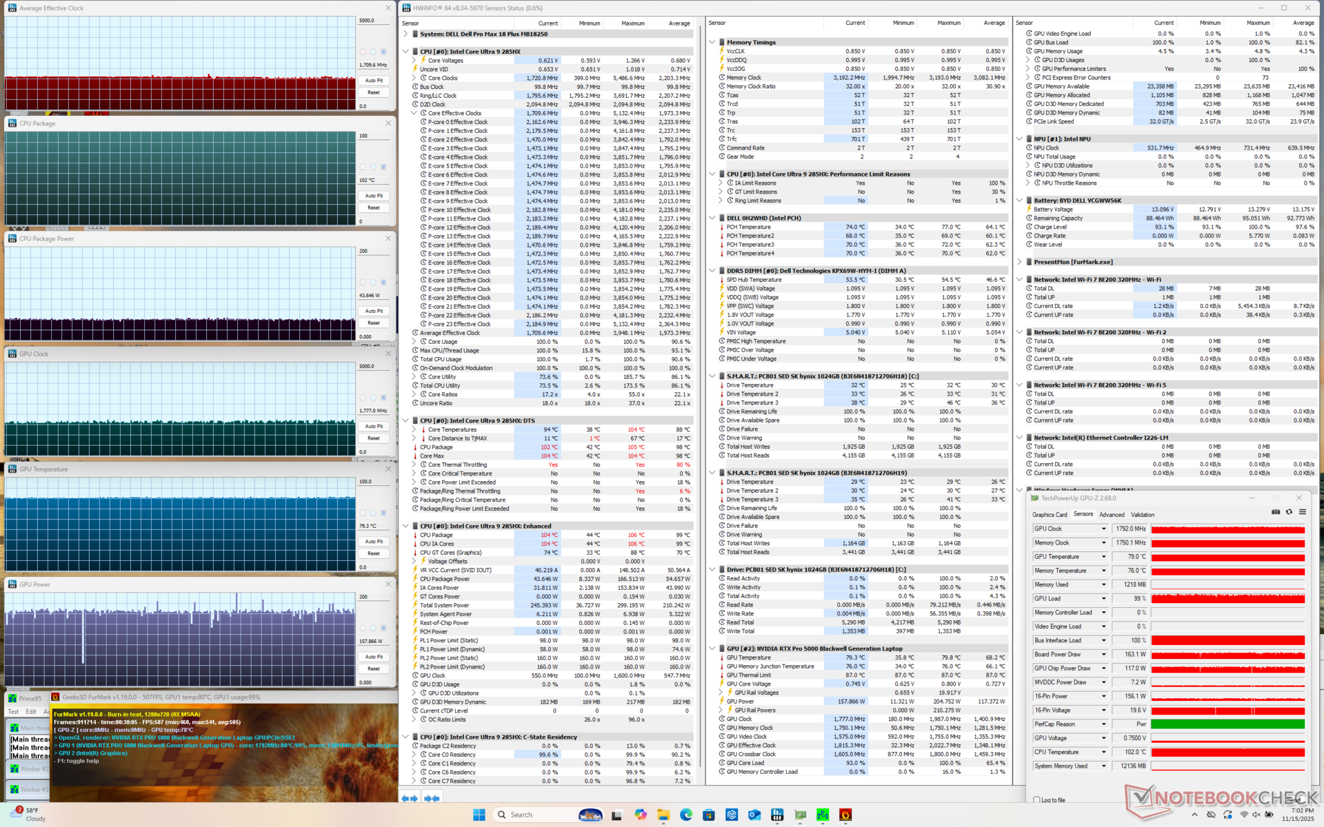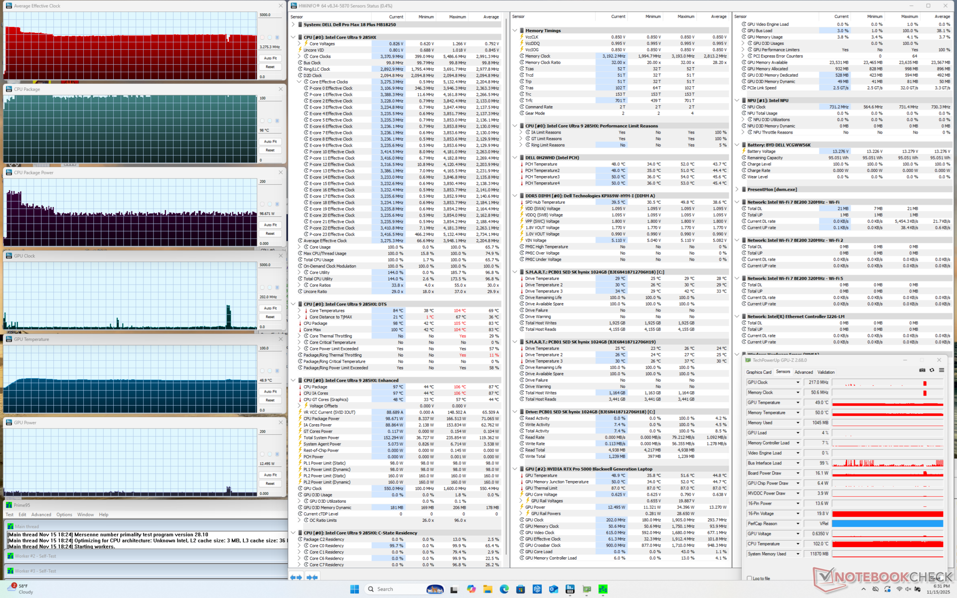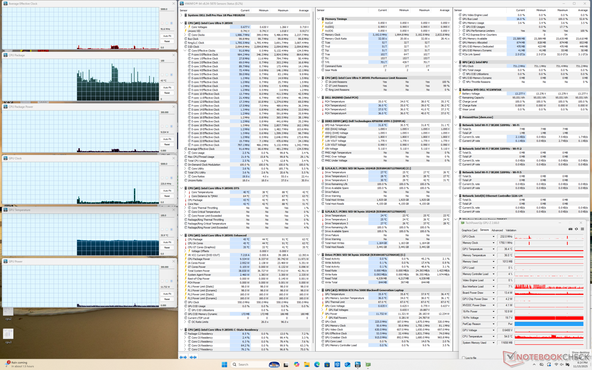 Nasza jednostka testowa to konfiguracja z wyższej półki z procesorem Arrow Lake-HX Core Ultra 9 285HX vPro, 175 W GPU Nvidia RTX Pro 5000 Blackwell i dwoma dyskami SSD PCIe5 w RAID 0 za znacznie ponad 6000 USD. Wszystkie opcje są dostarczane z tym samym niedotykowym wyświetlaczem QHD+ 1600p.