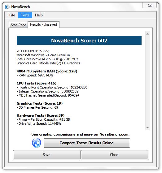 Testowany procesor osiągnął w teście CPU aplikacji 3DMark06 3555 oczek. Wynik ten wskazuje na przewagę w wydajności nie tylko nad starszymi procesorami i5, ale i nad niektórymi czterordzeniowymi i7 pierwszej generacji (np. i7-740QM wypada w tym programie o 200 pkt. gorzej).