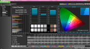 Średnia luminancja przy maksymalnej intensywności podświetlenia wyniosła 372 cd/m², co jest znakomitym wynikiem. Dla porównania w przypadku ,MacBooka Air 13 było to 263,2 cd/m². Pomiary wykazały, że podświetlenie jest dalekie od równomiernego, ale w praktyce właściwie się tego nie zauważa. Gamut tego ekranu pokrywa przestrzeń kolorów sRGB w 85%, co jest relatywnie dobrym wynikiem (w starszym XPS-ie 13 9333 było to 76%). Pokrycie przestrzeni Adobe RGB wyniosło 63%. Na ustawieniach fabrycznych średni błąd dE 2000 w odwzorowaniu kolorów wynosił 5,92, co również jest niezłym wynikiem. Obraz miał tylko odrobinę chłodną tonację (punkt bieli: 7013 K).