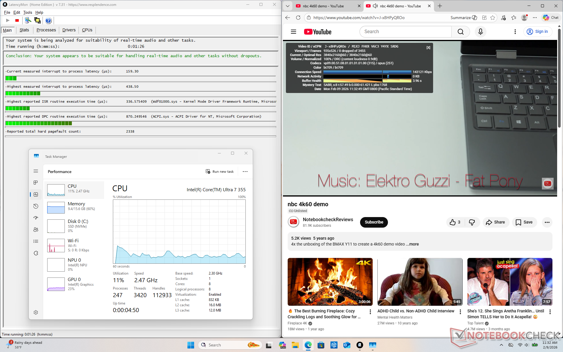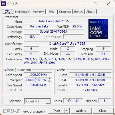 The Core Ultra 7 355 traci wiele z tego, co czyni serię Panther Lake H tak wyjątkową. W szczególności zarówno wydajność, jak i wydajność na wat są bliższe Lunar Lake-V lub nawet gorsze, biorąc pod uwagę ich zintegrowaną wydajność graficzną. Podczas gdy flagowy Core Ultra X7 358H jest ogromnym krokiem naprzód dla tej serii, to Core Ultra 7 355 ze średniej półki może sprawiać wrażenie przemianowanego Core Ultra 7 255U pod wieloma względami. System nie działa zauważalnie chłodniej ani dłużej niż szybsza opcja Core Ultra X7, pomimo różnic w wydajności.