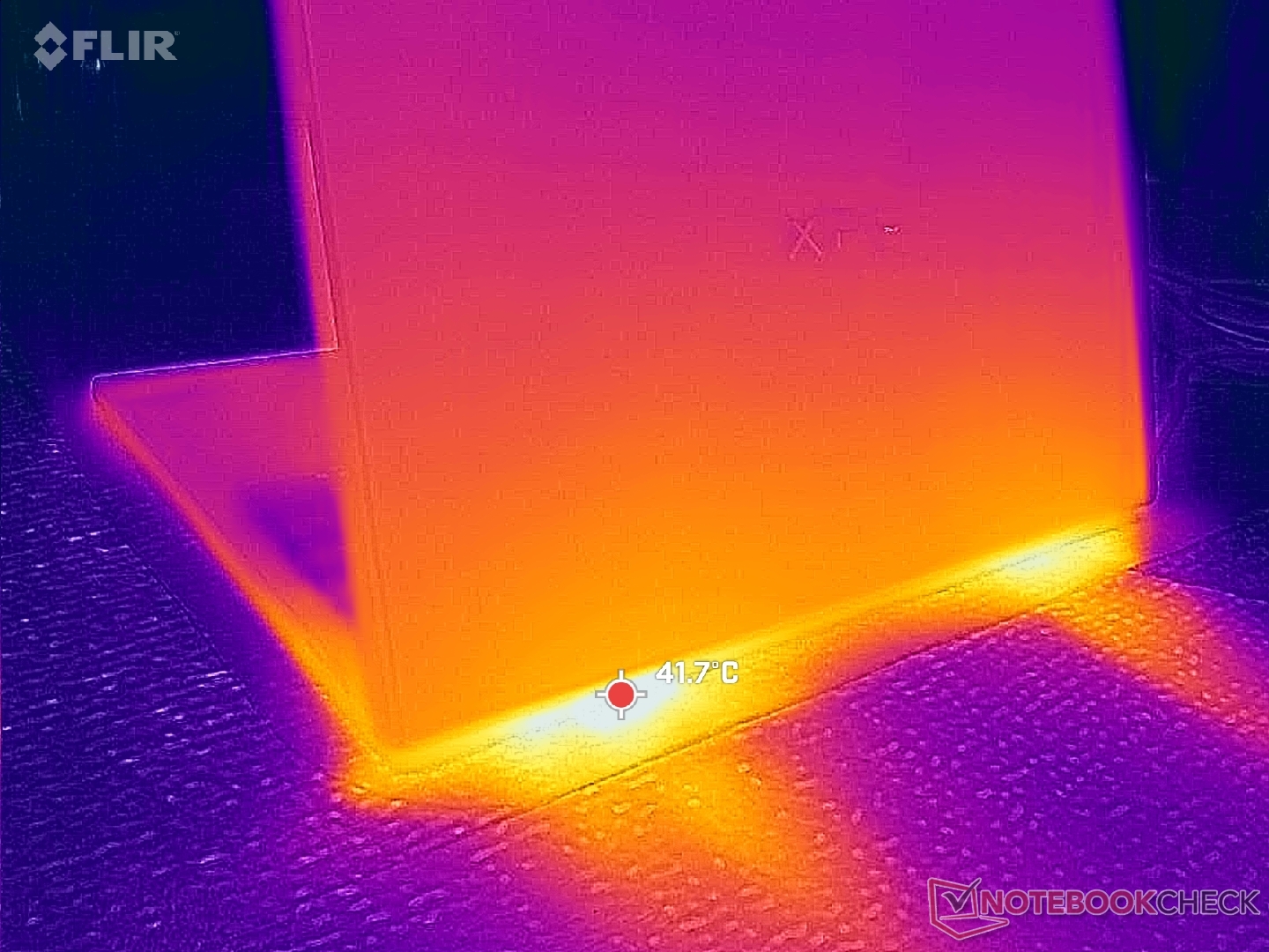 Gorące punkty temperatury powierzchni ustabilizowałyby się na niemal identycznych poziomach jak te, które zaobserwowaliśmy na XPS 14 X7 pomimo znacznie wyższej wydajności tej drugiej konfiguracji.