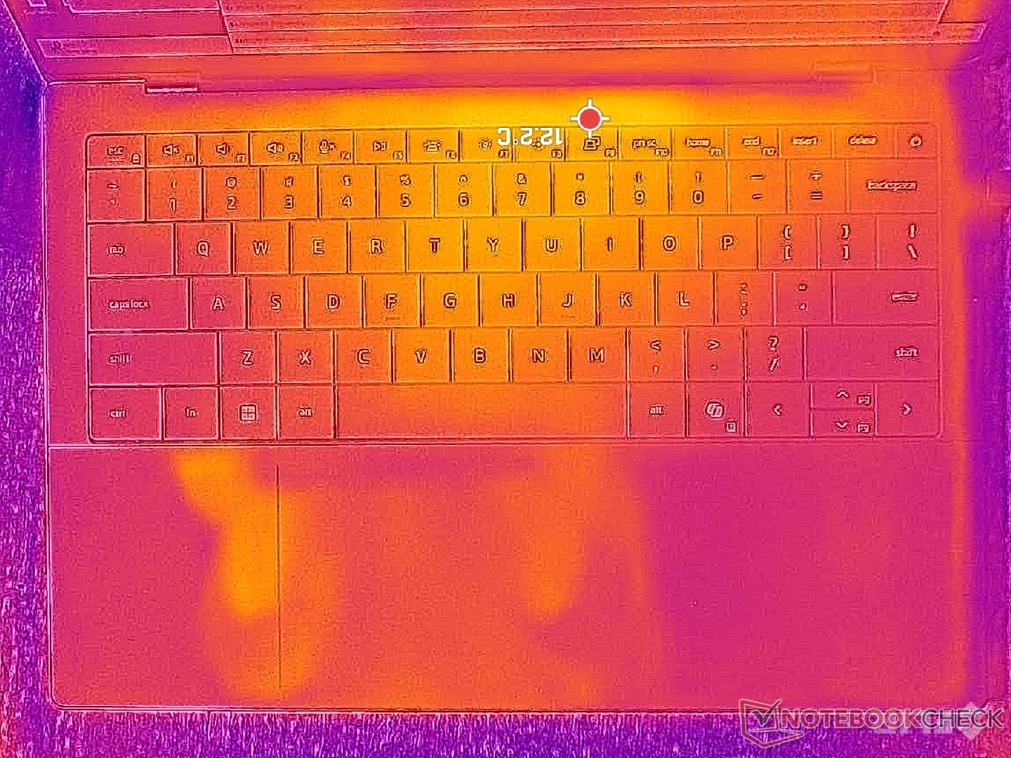 (+) Podpórki pod nadgarstki i touchpad są chłodniejsze niż temperatura skóry i maksymalnie 27.4 °C / 81.3 F i dlatego są chłodne w dotyku.