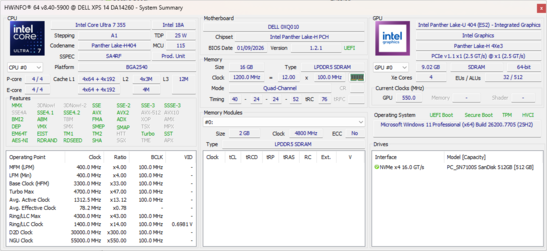 | Dell XPS 14 Core Ultra 7 355 Ultra 7 355, Intel Graphics 4 Xe3, WD PC SN7100S SDFPMSL-512G-1101, IPS, 1920x1200, 14" | Dell XPS 14 Core Ultra X7 358H Ultra X7 358H, Arc B390 Panther Lake iGPU, Samsung PM9C1b MZVL81T0HFLB-00BH1, OLED, 2880x1800, 14" | Asus ExpertBook PM3406 Ryzen AI 7 350, Radeon 860M, Western Digital PC SN5000S SDEQNSJ-512G-1002, IPS, 1920x1200, 14" | Lenovo ThinkPad T14 Gen 6 21QG001VGE Core Ultra 7 258V, Arc 140V, Samsung PM9E1 1 TB MZVLC1T0HFLU, IPS LED, 1920x1200, 14" | HP OmniBook Ultra Flip 14 Core Ultra 7 258V, Arc 140V, Samsung PM9A1 MZVL22T0HBLB, OLED, 2880x1800, 14" | Samsung Galaxy Book5 Pro 14 940XHA Core Ultra 5 226V, Arc 130V, Samsung PM9C1 MZVL8512HELU, OLED, 2880x1800, 14" | |